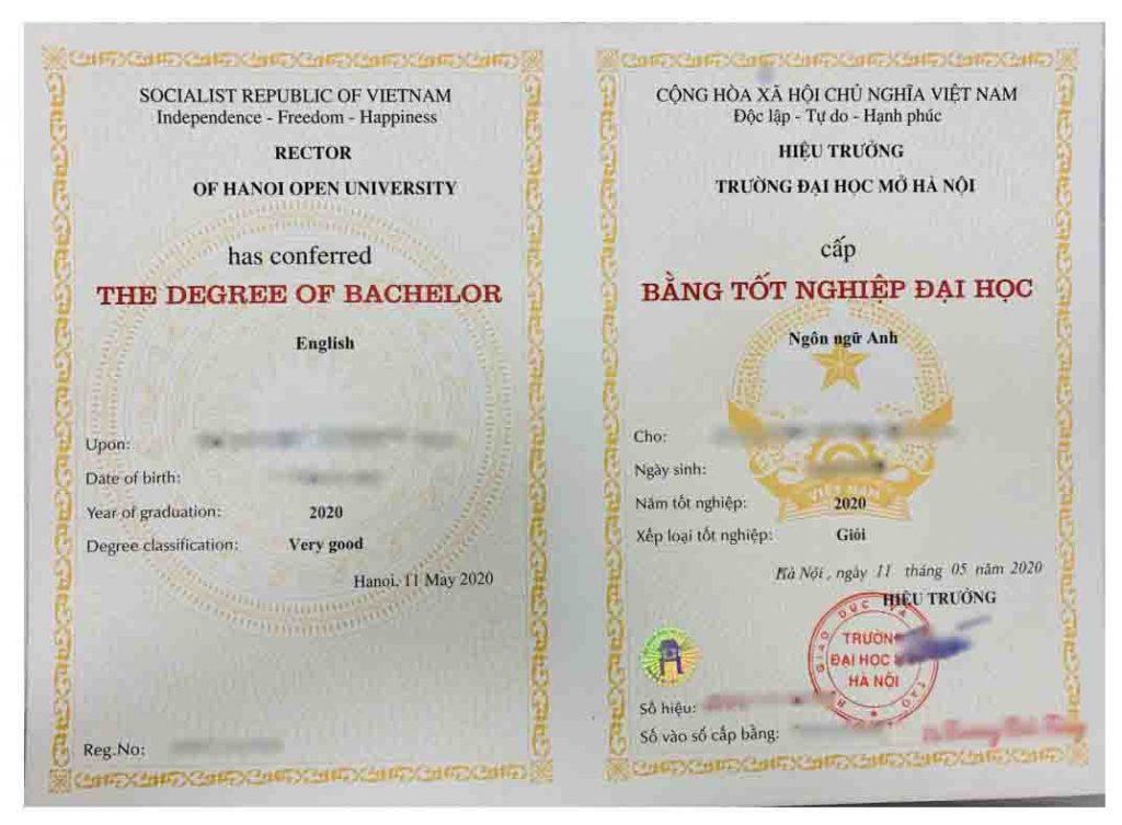 Từ ngày 01/03/2020, không còn ghi hình thức đào tạo “Hệ từ xa” trên văn bằng đại học, Trường Đại Học Mở Hà Nội đã áp dụng theo mẫu phôi bằng mới
